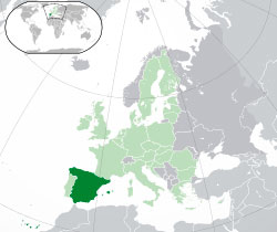 España, también denominado Reino de España,nota es un país soberano, miembro de la Unión Europea, constituido en Estado social y democrático de derecho y cuya forma de gobierno es la monarquía parlamentaria. Su territorio está organizado en 17 comunidades y dos ciudades autónomas. Su capital es la villa de Madrid. Es un país transcontinental que se encuentra situado tanto en Europa Occidental como en el norte de África. En Europa ocupa la mayor parte de la península ibérica, conocida como España peninsular, y el archipiélago de las islas Baleares (en el mar Mediterráneo occidental); en África se hallan las ciudades de Ceuta (en la península Tingitana) y Melilla (en el cabo de Tres Forcas), las islas Canarias (en el océano Atlántico nororiental), las islas Chafarinas (mar Mediterráneo), el peñón de Vélez de la Gomera (mar Mediterráneo), las islas Alhucemas (golfo de las islas Alhucemas), y la isla de Alborán (mar de Alborán). El municipio de Llivia, en los Pirineos, constituye un enclave rodeado totalmente por territorio francés. Completa el conjunto de territorios una serie de islas e islotes frente a las propias costas peninsulares.