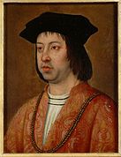 Auto de fe presidido por Santo Domingo de Guzmán, de Pedro Berruguete, ca. 1495. La gran mortandad provocada por la Gran Peste de 1348, particularmente grave en la Corona de Aragón, precedida de las malas cosechas del ciclo de 1333 (lo mal any primer), provocaron una gran inestabilidad tanto económica y social como política e ideológica. En Castilla se desató la Primera Guerra Civil Castellana (1351-1369) entre los partidarios de Pedro I el Cruel y su hermanastro Enrique II de Trastamara. En Aragón, a la muerte de Martín I el Humano, representantes de los tres Estados de la Corona eligieron como sucesor, en el Compromiso de Caspe (1412), a Fernando de Antequera, de la castellana Casa de Trastámara. La expansión mediterránea aragonesa continuó con la conquista del Reino de Nápoles durante el reinado de Alfonso V el Magnánimo. La crisis fue particularmente intensa en Cataluña, cuya expresión política fueron las disputas entre Juan II de Aragón y su hijo, Carlos de Viana, aprovechadas por las instituciones representativas del poder local (la Generalitat o comisión permanente de las Cortes y el Consell de Cent o regimiento de la ciudad de Barcelona) para manifestar el escaso poder efectivo que la monarquía aragonesa tenía sobre el particularismo (pactismo, foralismo) de cada uno de sus territorios, donde prevalecían las constituciones, usos y costumbres tradicionales (usatges, observancias) sobre la voluntad real. Simultáneamente estallaron las tensiones sociales entre la Busca y la Biga (alta y baja burguesía de la ciudad de Barcelona) y las revueltas de los payeses de remença (campesinos sometidos a un régimen de sujección personal particularmente duro), todo lo cual hizo estallar la compleja Guerra Civil Catalana (1462 - 1472). El debilitamiento de Barcelona y Cataluña benefició a Valencia, que se convirtió en el puerto marítimo que centralizó la expansión comercial de la Corona de Aragón y alcanzó los 75.000 habitantes a mediados de siglo XV, con un auge cultural que permite definirlo como Siglo de Oro Valenciano. El reino de Aragón, sin salida al mar y centrado en actividades fundamentalmente agropecuarias, limitó su desarrollo económico y social. Los privilegios de ricoshombres y nobleza laica y eclesiástica impidieron el desarrollo de una burguesía pujante, y su peso relativo en el equilibrio entre los Estados de la Corona aragonesa disminuyó. IsabellaofCastile06.jpg Michel Sittow 004.jpg Isabel I de Castilla y Fernando II de Aragón, los Reyes Católicos. Su matrimonio en 1469 selló la unión dinástica de las Coronas de Castilla y Aragón. En 1479, con la subida al trono de Fernando el Católico, segundo hijo y heredero de Juan II, y rey consorte de Castilla por su matrimonio con Isabel la Católica, las tensiones sociales se redujeron, incluida la conflictividad campesina (Sentencia Arbitral de Guadalupe, 1486). El creciente antisemitismo, estimulado por predicadores como San Vicente Ferrer o el Arcediano de Écija, había explotado en la revuelta antijudía de 1391, que al provocar conversiones masivas originó el problema converso: la discriminación de los cristianos nuevos por los cristianos viejos, que llegó incluso a la persecución violenta (revuelta anticonversa de Pedro Sarmiento en Toledo, 1449) y suscitó la creación de la Inquisición española (1478).