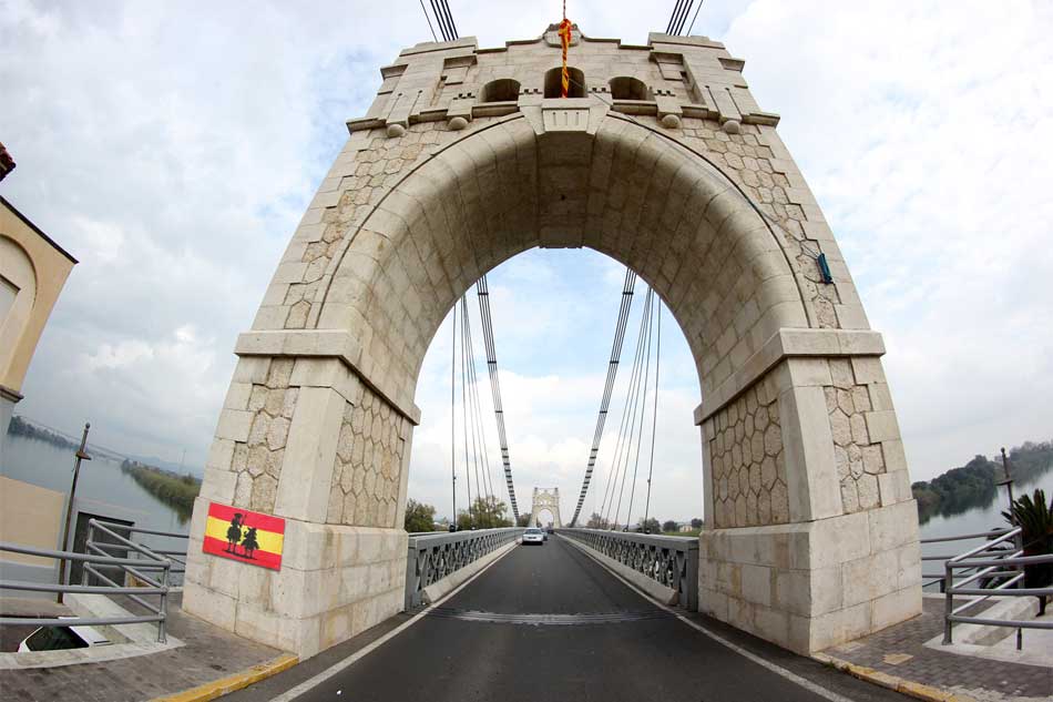 El Ebro guarda silencio al pasar por el Puente colgante de Amposta
