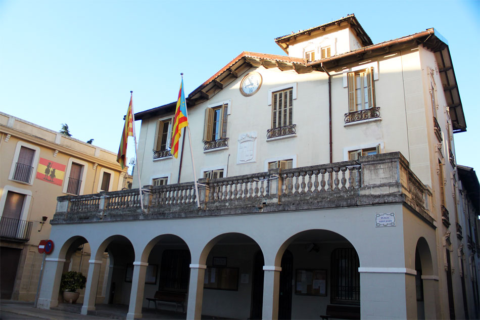 Vista parcial de la plaza de Sant Joan y del ayuntamiento de Cardedeu.