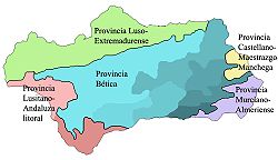 En el mapa pueden verse a grandes rasgos las zonas de Andalucía ceceantes, seseantes y distinguidoras. Véase también: Dialecto andaluz. En Andalucía se habla mayoritariamente el dialecto andaluz o modalidad lingüística andaluza, una forma de hablar el castellano. El habla andaluza es de gran riqueza y variedad. Conserva muchas palabras árabes y de otras lenguas. No está unificado y presenta una gran diversidad interna de rasgos característicos, que no tienen una distribución geográfica homogénea.144 145 Las isoglosas que marcan los límites entre los fenómenos lingüísticos característicos del andaluz, se solapan formando un entramado de fronteras divergentes que no permiten establecer límites claros entre ellos, y que hacen del andaluz una unidad dialectal variada.146 Mitología y religión[editar]