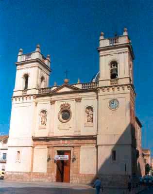 Iglesia de San Pedro. Iglesia de San Pedro. Ubicada en la plaza mayor, es la tercera de las construcciones en el mismo solar. Acabada en 1771, consta de dos torres en la fachada y una gran cúpula. En el interior conserva algunos elementos de orfebrería religiosa del siglo XVI. En julio de 1936 se perdieron cuadros del pintor Vicente López durante el asalto que sufrió el templo, así como la casi total destrucción del templo. En la portada se encuentran las imágenes de San Pedro y San Pablo y un relieve con la tiara de San Pedro llevada por dos ángeles de estilo barroco. Ermita de la Virgen de los Desamparados. Es una capilla de una sola nave que tiene un cuerpo adicional a la izquierda con un techo y dos ventanas con rejas. La Virgen preside la ermita y también hay lienzos pequeños obra de María Rodrigo. La ermita original fue derruida en 1937 que ya había sufrido graves daño en el asalto producido en julio de 1936. Con la voluntad de algunos vecinos fue inaugurada la actual en 1961. Monumentos civiles[editar]